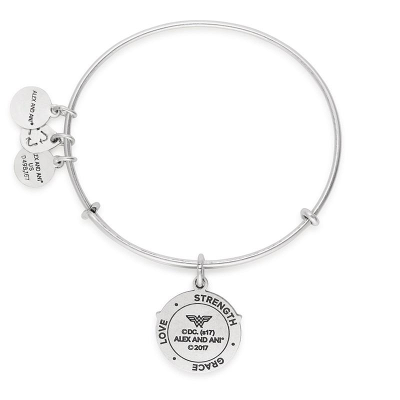 Strength. Love. Grace. Channel your fearlessness and unite with Wonder Woman with this silver charm bangle featuring four charms, including the classic Wonder Woman logo. Expandable from 2" to 3.5" Charm Dimension: 19.05mm x 19.05mm Crafted in RAFAELIAN SILVER Finish